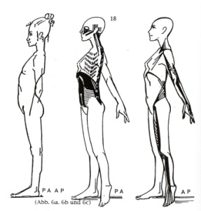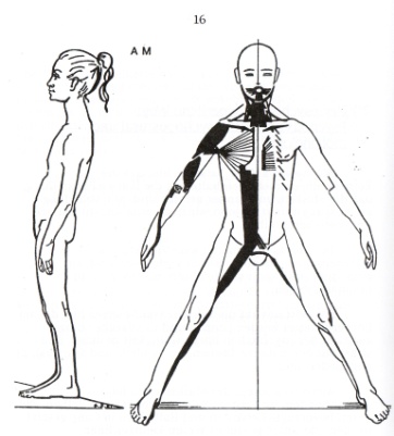 De auteur heeft zes spiergroepen beschreven via welke de psychisch- lichamelijke componenten tot uitdrukking komen.
